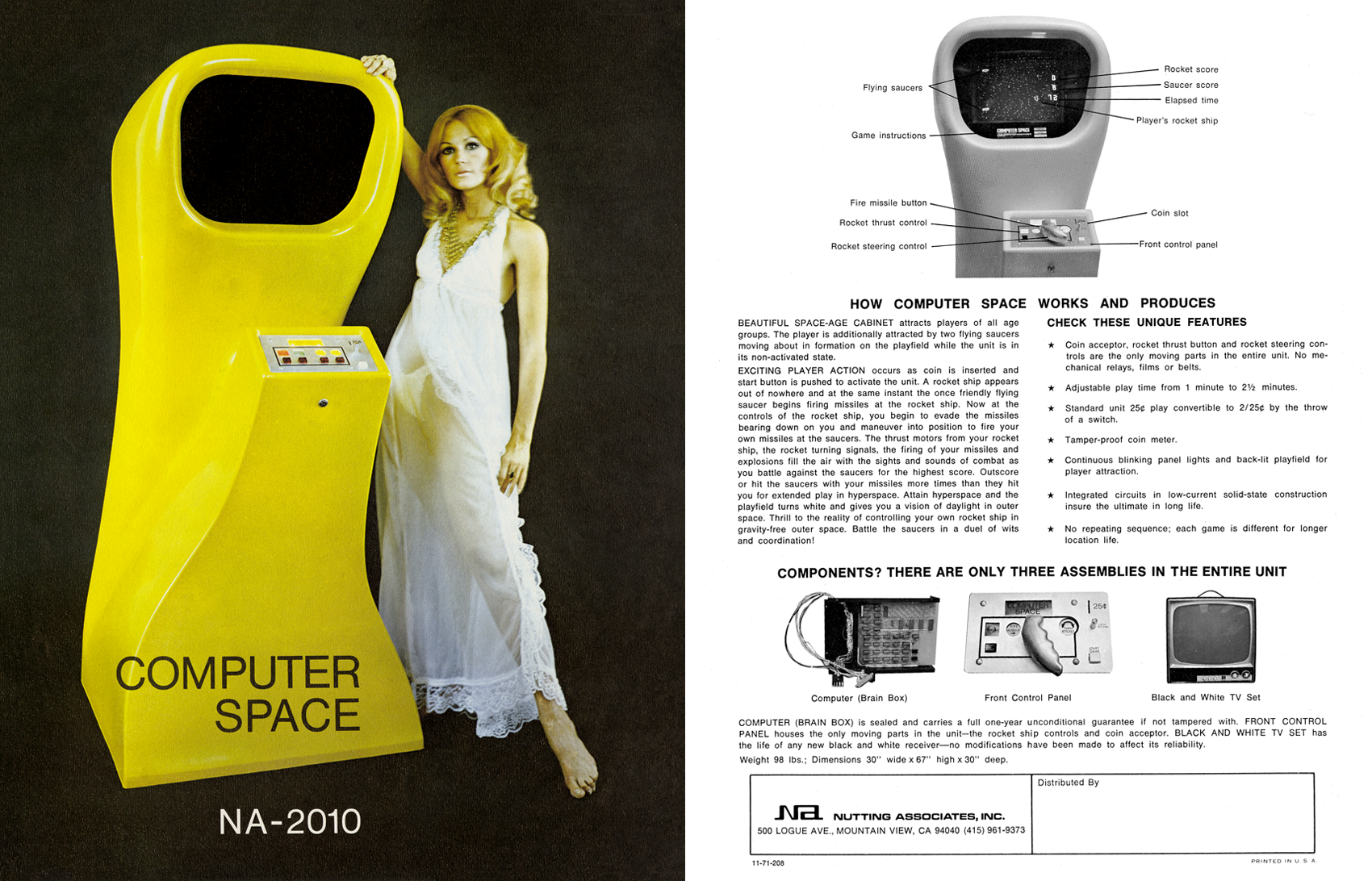 1962 Steve Russell & al. Bastard child of the military industrial complex. Based on a virtual planetarium. Rand on PDP-1 an early digital computer. Open source-ish collaborative creation (modding). Progenitor of Asteroids and all shooters.