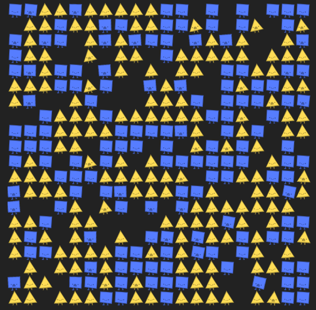 Parable of the polygon, an explorable explanation based on Thomas Schelling’s 1971 paper, Dynamic Models of Segregation, which used a cellular automata-like model to explain how populations segregate (I personally do not agree with the premise and the conclusions but the methodology was groundbreaking and turning it into a “parable” makes it more palatable to me).
