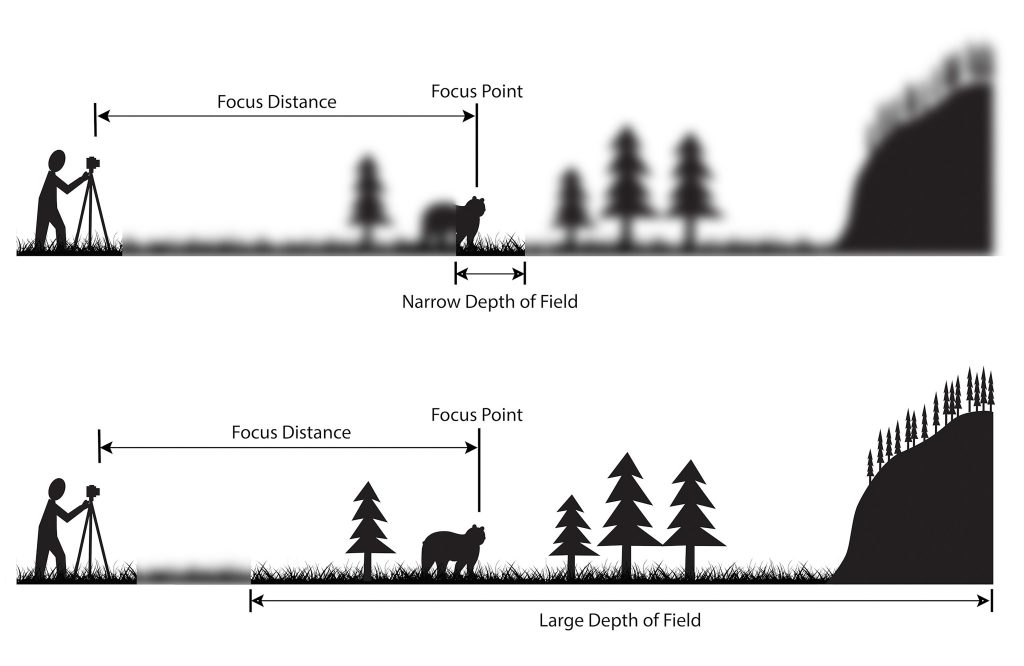 The aperture regulates the sensor’s degree of exposure to light just like the iris in our eyes. It affects not only the exposure but the depth of field (below) in relation to shutter speed.