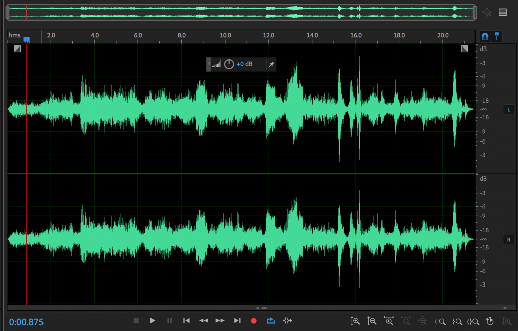 topics: waveform, channels, playing/looping, zooming, playhead, scrubbing, selecting, copy, pasting, copy to new, amplitude, envelope, clipping, fade-in, fade-out, recording, clicks.