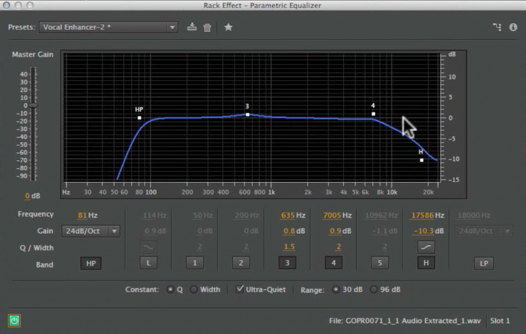 Some other common noise filtering are de-humming and de-essing and de-reverbering